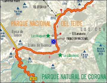 At Los Roques erosion has carved out spectacular rock formations which origin from lava columns. In the background you see El Teide, the highest mountain of Spain with the cableway at right.![]() |