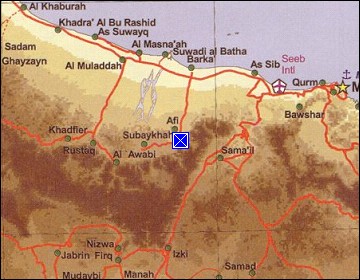 Date: Feb 26, 2010 Longitude: 57° 49.72' Latitude: 23° 23.68'